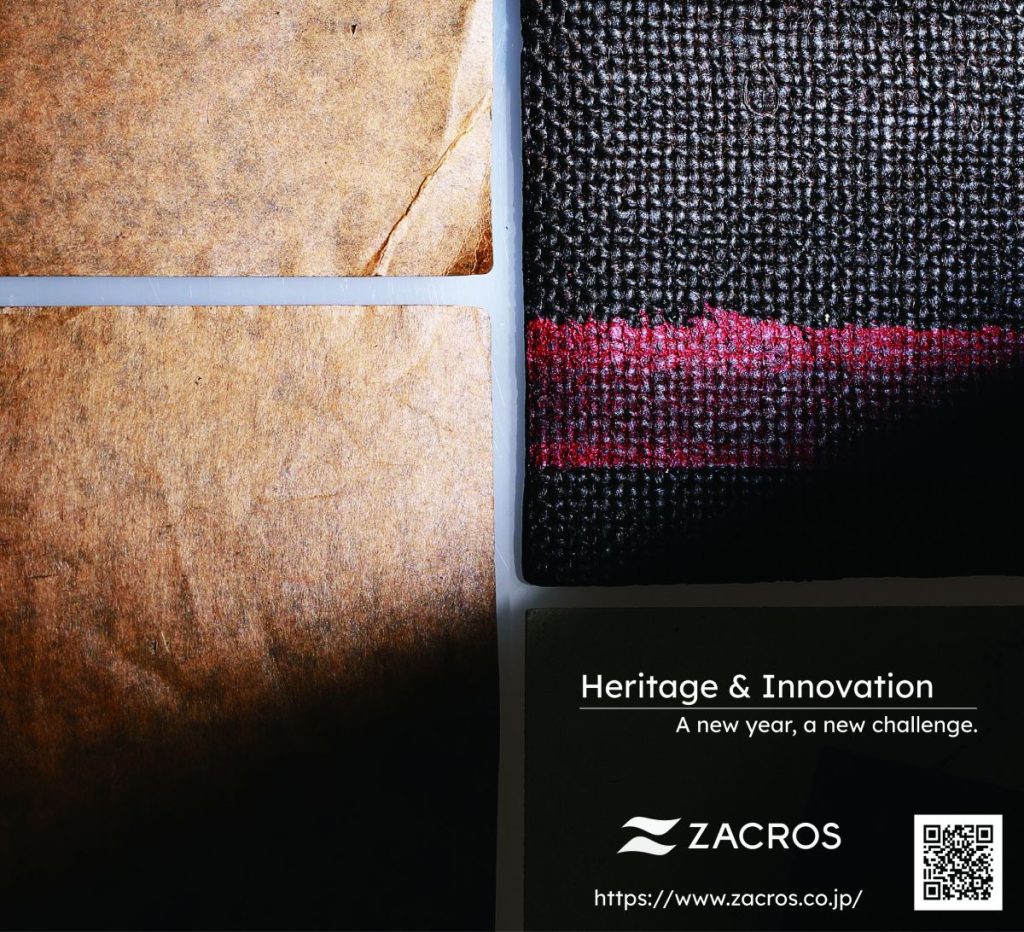 表紙には、創業の原点である専売特許「ターポリン紙」とその応用技術を主役に、ZACROSが受け継ぐ技術の「継承」と未来へ伸びる「革新」を象徴し、進化の先にこそ歴史と精神が息づく「ソリューション創造」の姿勢を表現しています。